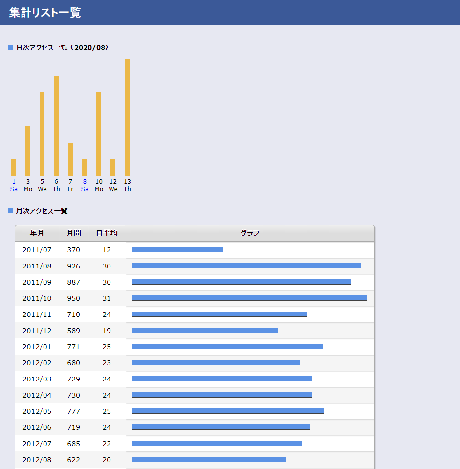 - 集計一覧は、アクセス数の多いページ順に自動ソート表示します。