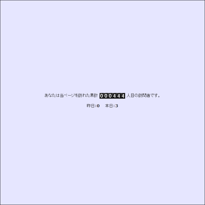 - SSI式のテキストカウンタです。テキストで表示されるため、携帯用のウェブページにも無理なく表示可能です。