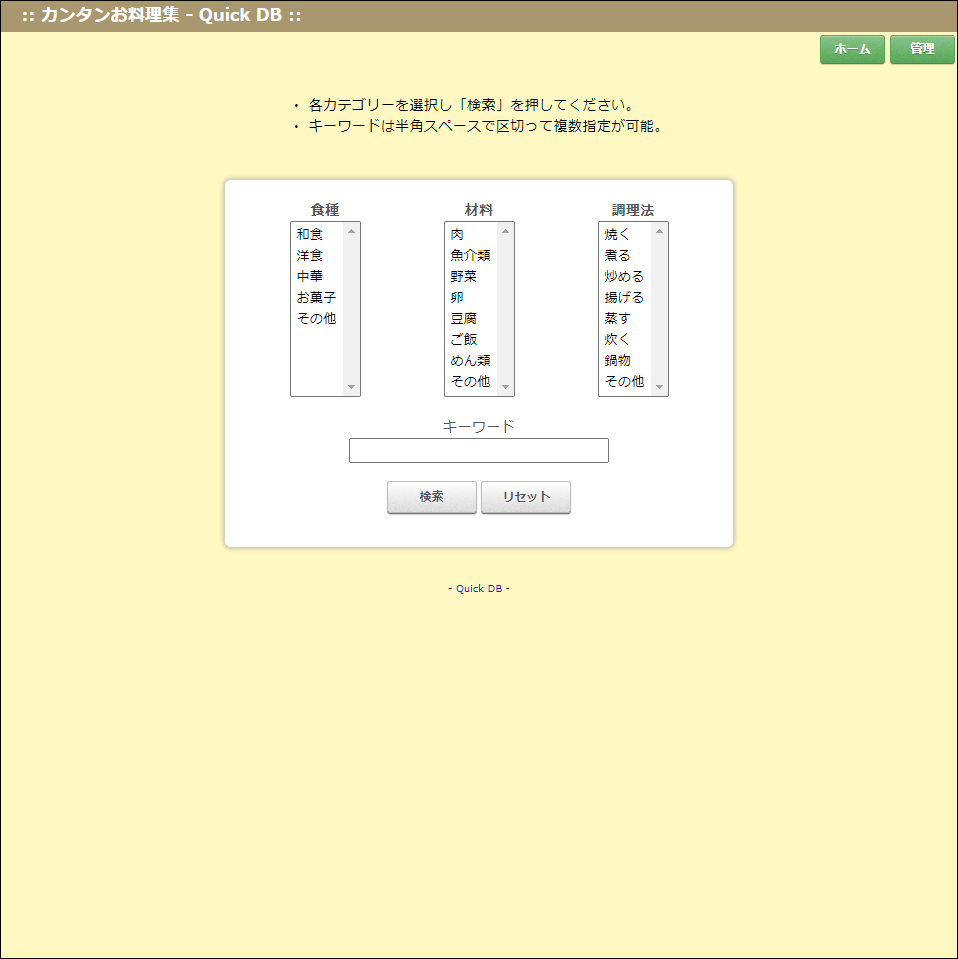 全画面がテンプレート式となっております。サイトに合わせたデザインでQuick DBを運用することが可能です。