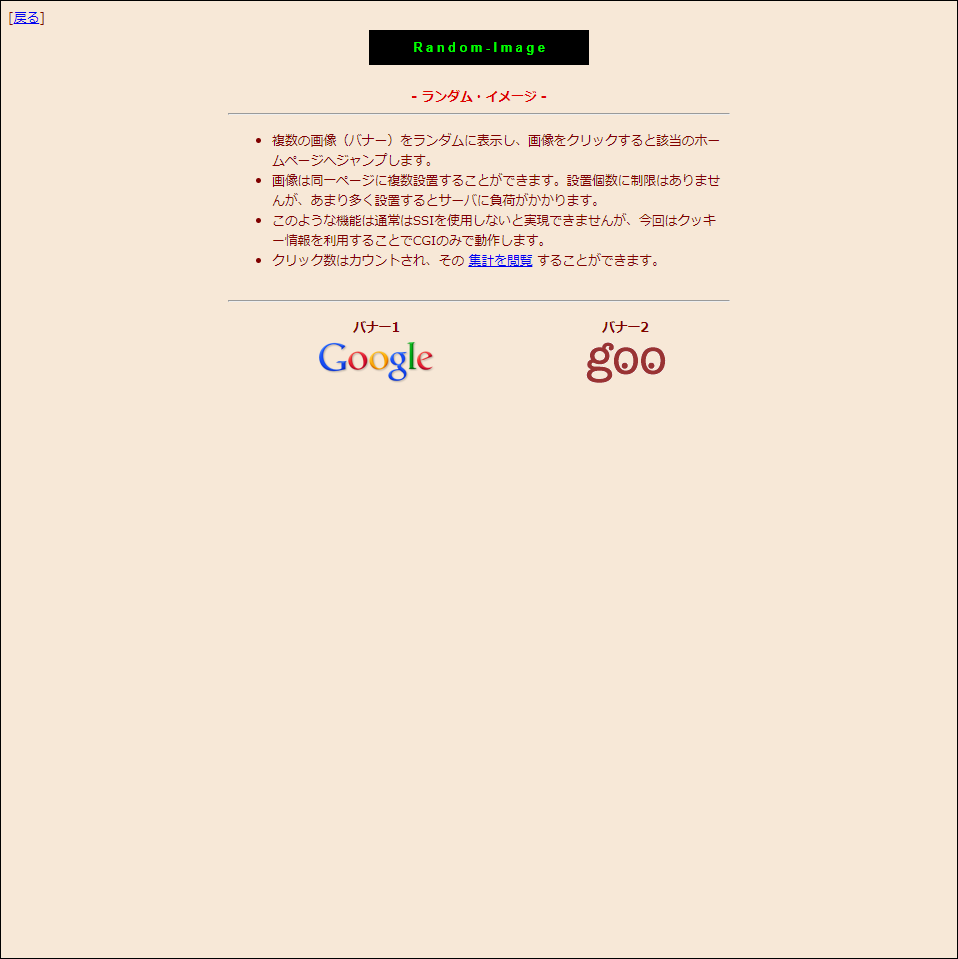 このプログラムは、バナー画像をランダムに表示しクリックされたカウントを集計表示するスクリプトです。