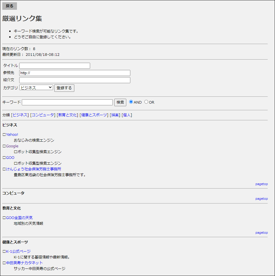 Webサイトのリンクを大量に集め、分野別に分類するCGIです。
