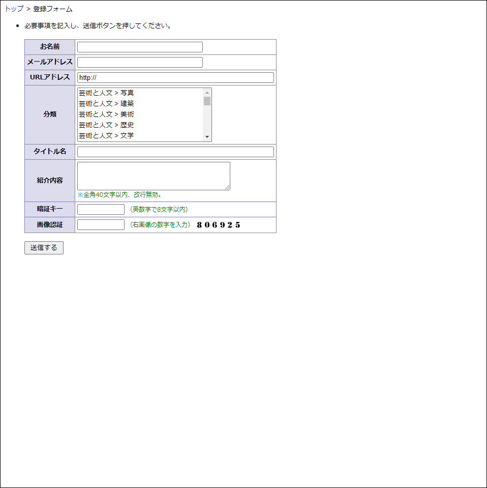- スパム対策用に画像認証機能を使用することができます。