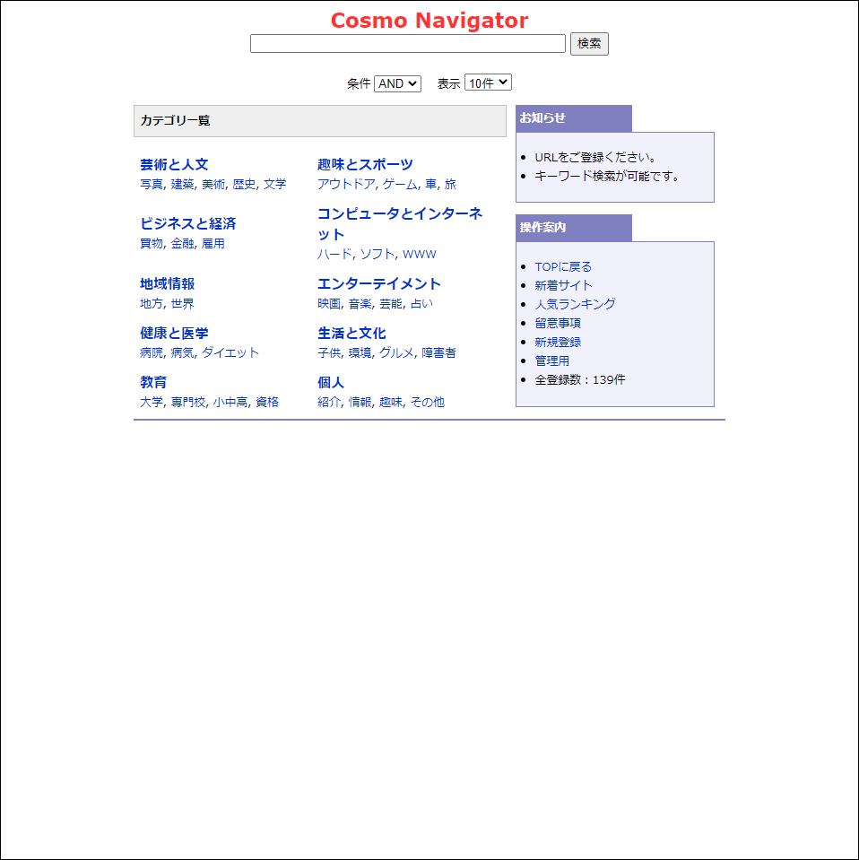 このシステムは、「検索機能付きのリンク集」を作成するシステムです。