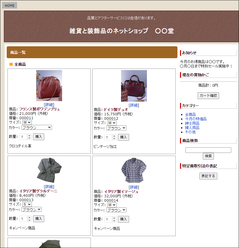 クッキーを使った買物カゴシステムで、WEBショッピングを行うためのプログラムです。