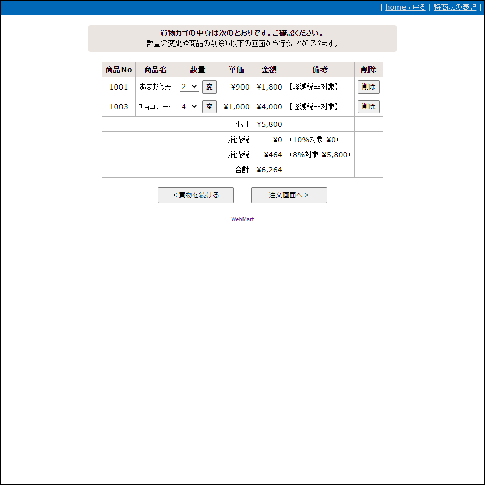 WEB MART (クッキー式カート)